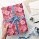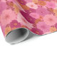 This vibrant floral wrapping paper features a lively pattern of pink, red, and peach flowers in a modern, stylized design. The continuous flow of densely packed blooms creates a cheerful and inviting atmosphere, perfect for adding a touch of warmth to any gift. Ideal for celebrations or special occasions, this paper combines playful colors with an artistic, semi-abstract representation of nature's beauty, making it a delightful choice for wrapping presents.