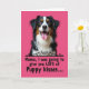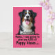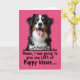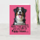 This card features a tri-color dog centered against a solid magenta background, with its head and upper chest filling most of the upper area. Its fluffy coat mixes deep black, bright white, and warm russet-brown patches, and the soft lighting makes the fur look touchable and gentle. The dog’s big brown eyes seem to gaze right at you with an affectionate, eager look, like it’s waiting for a familiar voice ❤️. Its open mouth and pink tongue add a friendly, “come closer” energy, turning the portrait into a sweet little greeting. Below the dog, a black decorative scrollwork flourish stretches across the card as a neat divider. Under that, the message appears in black text, with “Mama,” followed by “I was going to give you LOTS of Puppy kisses...” and the ellipses trailing at the end. The magenta backdrop stays smooth and uniform, while the black scrollwork and black lettering sit crisply beneath the dog’s face 🌼.