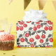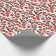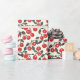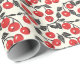 This cheerful wrapping paper features a playful pattern of vibrant red cherries with glossy highlights, connected by dark brown branches and black leaves on a light beige background. The design is arranged diagonally in clusters, creating a dynamic flow that evokes a sense of summer freshness and abundance. With its clean lines and solid colors, the digital illustration style combines realism and abstraction for an inviting and whimsical look, perfect for adding a joyful touch to any gift or occasion.
