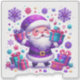 A cheerful Santa Claus dressed in a vibrant violet outfit is surrounded by colorful gifts and festive decorations. With a broad smile, he joyfully holds two beautifully wrapped presents, embodying the spirit of Christmas and happiness.