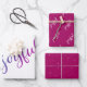 Joyful Script Snowflake Purple Holiday Wrapping Paper Sheets