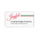 This return address label features a clean and simple design. Script text, across the top, reads: Joyful. The label is accented with a faded dusty green and red strip across the top. Custom text allows you to add you name and return address.