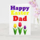 This card features a stacked greeting in three lines, set against a white background, with the top word in deep violet, the middle word in sunny yellow, and the bottom word in clear crimson. The lettering sits centered near the top half, leaving open space below so the design can breathe. Beneath the text, three tall flowers rise on slim green stems with a few curved leaves, like a small bouquet offered between close friends 🌷. Their smooth, light-catching petals give them a glossy, porcelain-like look that adds a gentle, romantic touch. The left flower is bright yellow, the center bloom is ruby red, and the right flower is purple, echoing the three text colors above. The simple layout keeps the focus on the tender “gift” of the flowers, as if they’re being presented with a quiet smile. At the bottom, the green stems and leaves taper neatly upward into three blossoms spaced evenly across the page 🐰.