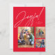 Joyful three photo red family Christmas Holiday Card