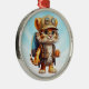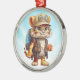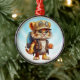 Joyful Tiger Cub with Backpack and coffee Metal Ornament