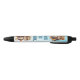 Very nice blue, or black ink pen. I will be buying more. The print was fine. I can easily see the print. The flowers look great.