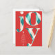 This bold and modern Christmas card design radiates festive energy with a striking red background and the word "JOY" in large, patterned typography. The accompanying text spreads heartfelt holiday wishes, making it a perfect choice for sharing the spirit of Christmas. With a mix of contemporary and classic elements, this card conveys a message of joy, peace, and cheer for the season.