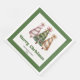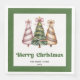 Modern Christmas dinner napkins featuring three minimalist watercolor Christmas trees in earthy green and gold with playful leopard pattern accents and hand-drawn lettering. A stylish choice for festive tables, these napkins are personalized with your custom name, adding a unique and elegant touch to your holiday dinner or Christmas party décor. 🎄✨