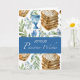 This beautiful Passover design features a watercolor-style illustration of stacked matzah, a traditional wine cup (kiddush cup), and delicate blue flowers intertwined with branches, all set against a soft, calming background. The elegant blue bar across the design highlights the message "Joyous Passover Wishes." This thoughtful and festive design captures the spirit of the holiday, making it a perfect way to send blessings and celebrate the joy, peace, and togetherness of Passover with loved ones.