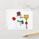 Cartoon Joyous Snowman Holding A Broom And Waving