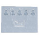 The Joyoux Noel design in pastel blue. A gift bag with silver trimmed Christmas trees, and a snowfall background. Designed with your holiday gifts in mind.