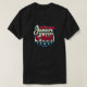 My 11 yo wore adult XL (5’7” 165#). The 8yo is small framed. She wore adult small and tied it in the back. Grandma wore adult large with long sleeve shirt underneath. Tall girl adult medium. Dark haired male adult large. Good quality dark Heather gray, Gildan brand shirt. -it was next up from basic choice and cost about $20 per shirt. Not too thick or thin. Washed and dried well, no major shrinkage. Not see-through. Can wear a bra under it fine. Screen print is just as shown and well done, front and back.