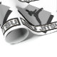 Wrap Ju Jitsu Christmas gifts or birthday presents with this Martial Arts gift wrapping paper featuring a male Martial Art man figure on a gray diamond above the phrase Ju Jitsu.