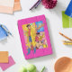 I was super excited when I got my cover in. It is attached by a magnet across the edge. I don’t think it will be very protective but it is very cute. I’m going to keep my iPad in a sleeve and use this face cover while I have it out. It folds to create a tilt for better viewing and to keep the iPad at a slight angle for typing. The colors are bright and it is fun. I’ve really enjoyed it. The personalization looks like amazing. It is the same color as the picture and is the same brightness. Well done! Very nice.
