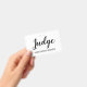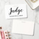 Trendy script typography judge name badge for competitions and contests.