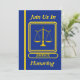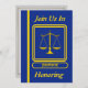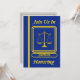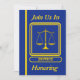 This blue and gold retirement invitation is decorated on the front with a Judge justice shield. You can customize this invitation by placing your information into the boxes provided.
