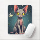 Judging Sphynx Cat UFO Space Cartoon Art Mouse Pad