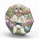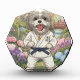 A charming illustration of a brave Shih Tzu puppy dressed in a traditional Judo uniform (Judogi) with a black belt. Set in a peaceful Japanese garden filled with cherry blossoms and zen vibes. Perfect for martial arts fans, dog lovers, and anyone who appreciates cute, aesthetic Japanese-themed art.