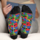 Novelty socks featuring a pattern of colorful juggler juggling balls. The perfect gift for both amateur hobbyists and professional jugglers alike
