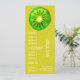 A colorful and cute menu template for a drinks bar, juice bar, fruit shop or health food shop. This cute menu has a cute original art illustration by Sacha Grossel of a Kiwi fruit slice with a citrus theme against a lime and yellow customisable background. The text is able to be customized to suit your needs.
