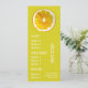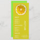 A colorful and cute menu template for a drinks bar, juice bar or health food shop. This cute menu has a cute original art illustration by Sacha Grossel of a lemon slice with a citrus theme against a lime and yellow customisable background. The text is able to be customized to suit your needs.