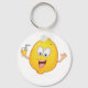 A bright yellow lemon with a happy face drinking a lemon drink. This design looks really effective on this Keychain