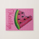 Puzzle design features an original marker illustration of a slice of juicy pink watermelon. Just personalize with your information.