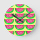 Juicy pink watermelon fruit pattern on lemon round clock