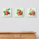 Set of three acrylic tiles to decorate your kitchen wall. Juicy red strawberries on a pale green texture background.