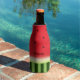 Get your beer cool and dressed for summer with this juicy watermelon bottle jacket. Red, white, and green with realistic speckled seeds and striped skin, this drinks accessory is a must have for summer barbecues, relaxing by the beach or pool, or being a couch potato in summery style.