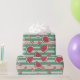 This wrapping paper is great for summer birthdays. The design features illustrative pattern of slices of a watermelon and green and pink horizonal stripes.