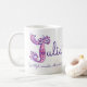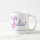Decorated hand drawn letter with your own name beginning with J and name meaning mug. Pretty heart and flower capital J doodled typographic design featuring hearts and flowers and the words Julia Youthful, romantic with creative flair in pink and purple. © Unique art and design by Sarah Trett. www.sarahtrett.com for www.mylittleeden.com on zazzle