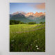 A beautiful morning looking towards the Julian Alps from a Slovenian meadow full of flowers.