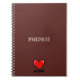 This customizable brown notebook features a comic-style heart decorated with the name "Julianne". You can customize the default text. This is a great back-to-school gift.