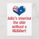 Commemorating Julia Gillard's appointment as Prime Minister of Australia, replacing Kevin Rudd. This range of designs feature the wording - Julia's steering the ship without a RUDDer! and an image of an Australian red, whie and blue heart. Show your support of Australia's first female Prime Minister with this great range.