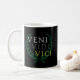 A great gift for the Ancient Roman loving, Latin loving person in your life. Julius Caesar's famous line "Veni, Vidi, Vici" emblazoned on a mug with the laurel wreath backdrop.