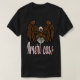 My 11 yo wore adult XL (5’7” 165#). The 8yo is small framed. She wore adult small and tied it in the back. Grandma wore adult large with long sleeve shirt underneath. Tall girl adult medium. Dark haired male adult large. Good quality dark Heather gray, Gildan brand shirt. -it was next up from basic choice and cost about $20 per shirt. Not too thick or thin. Washed and dried well, no major shrinkage. Not see-through. Can wear a bra under it fine. Screen print is just as shown and well done, front and back.