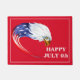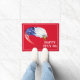 Doormat is shown with a July 4th patriotic USA Flag Eagle print design.