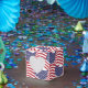 Party favor box shown in a patriotic USA Flag July 4th print design.