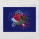The holiday ladybug wearing a tricorne hat and waving the Betsy Toss flag with fireworks in the background for July 4th.