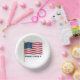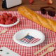 Tableware for 4th of July party with the American flag and Happy July 4 text.