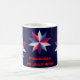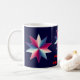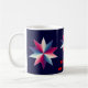This patriotic mug sports three simple pinwheel patterns of red, white and blue in the shape of a star. The text reads: Fireworks on July 4th! It can be customized or removed.