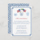 Accommodations / details / registry insert card with watercolor ginger jar, neutral florals and Stars & Stripes flags. You can move, delete or add text fields by entering the design tool. You can also change the contrast color of the Greek Key border on the front and the pattern on the back (shown here as a dark blue) to any color you like by entering the design tool (underneath the text customization area, click to "customize further") then changing the background color on each side. If you need more text then simply delete the pattern layer from the back then copy and paste the Greek Key border layers from the front and edit the hidden text layer.