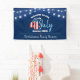 Proudly welcome every guest of your July 4th celebration bbq party with this striking, graphic, patriotic, personalized, Fourth of July Independence Day banner. Bold country, rustic “4” American flag, white bold typography with baby blue and white handwritten script along with festive string lights, overlay a navy blue background. Customize with your family name, name of event, date, or other copy. Sure to add stylish fun to your big summer event!