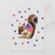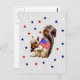 Cute brown patriotic squirrel. He's got his flag, is surrounded by red, white and blue stars and is all ready to go nuts celebrating Independence Day.