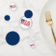 These table confetti pieces are a mix of patriotic red white and blue stars and stripes prints.
