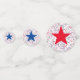 These table confetti pieces are a mix of patriotic red white and blue star prints.