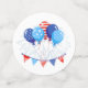 These table confetti pieces are a mix of patriotic red white and blue balloon prints.