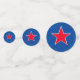 These table confetti pieces are a mix of patriotic red white and blue star prints.
