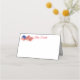 This folded name place card is shown in white with a festive July Fourth Flag print.